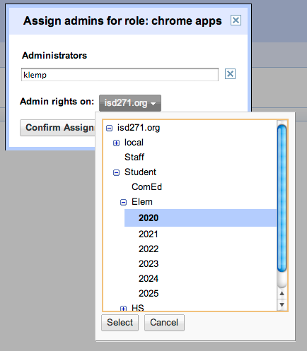 Another thing is, I'm wondering if I need to think about re-structuring our Org Units. I can see this being useful where I can give my Media Director the ability to pre-install their own extensions for 5th grade at their school. However, we don't have our OUs by school. Giving these abilities to teachers--we don't have them broken down by classes!