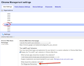 I don't know if this is new or not but I just realized you're able to label your Chrome Web Store Collection name per OU (organizational unit). Before, I think it was just "For isd271.org" (your domain name). Now, you can select an OU and modify the name. Nice.